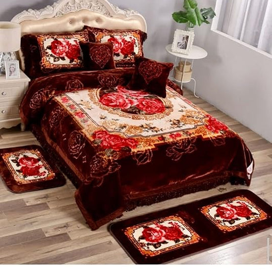 REHMAT Handloom ,Soft Bedding Set 8 Pcs (Quilt, Double Bed Sheet, 2 Pillow Covers, 2 Filled Cushions, 2 Filled Bolster Covers Set (3)